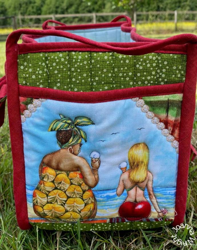 THEIR STORY: This bag is a surprise gift for a fellow Sarcoidosis sufferer. When she is well, she loves to skinny dip in the sea here in the UK, or, chunky dunk as she describes it. It took me about 6 months to track down this fabric and I was only able to obtain 70cm from someone else’s stash.