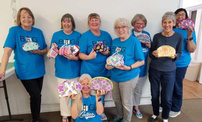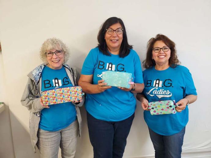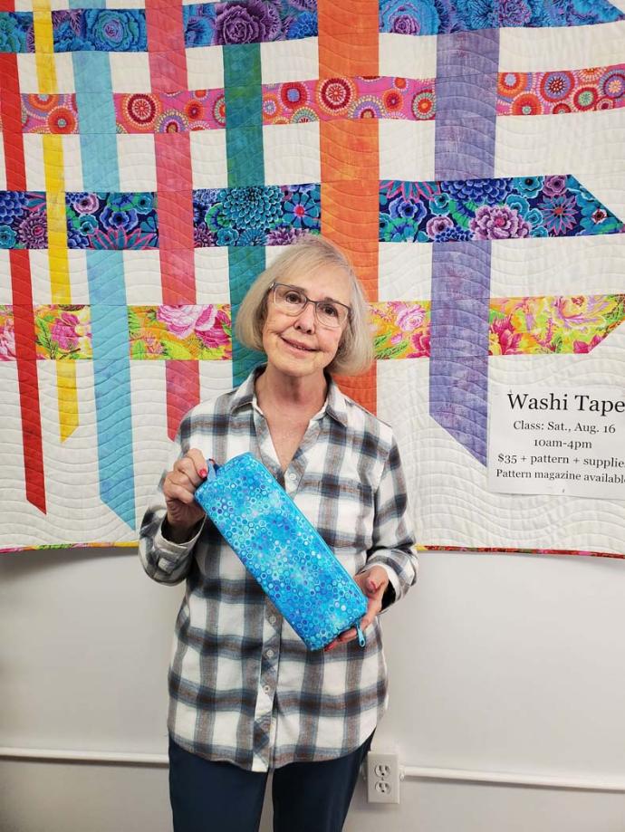 The June B.A.G. Ladies project was All Bottled Up, and students had to use blue fabric, since Annie's favorite color is blue! This little bag has many uses. The design was meant for nail polish bottles, but some students adapted it for thread spools, and essential oils. There were some cutting challenges with this pattern (READ the pattern carefully!!), but overall students were happy with their results. We even had a junior B.A.G. Lady assisting in the class.