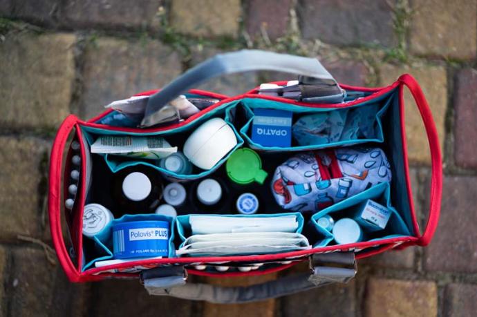 After we come back, I simply put the organizer into a drawer and and easily use the meds from there. When we leave, I simply grab the organizer and we're ready to go. What a game changer!