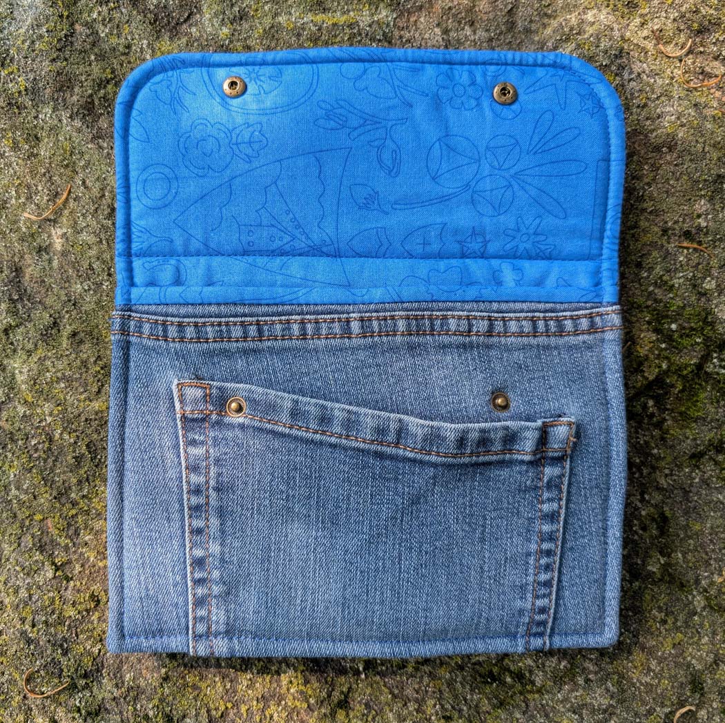 FABRIC: Main fabric is upcycled jeans; lining is by Alison Glass for Andover.