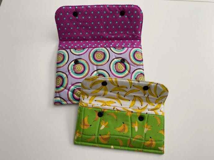 Randi made these Snappy Sleeves with Untamed by Tula Pink (left) and faux leather and Tim Holtz fabric from her stash (below).