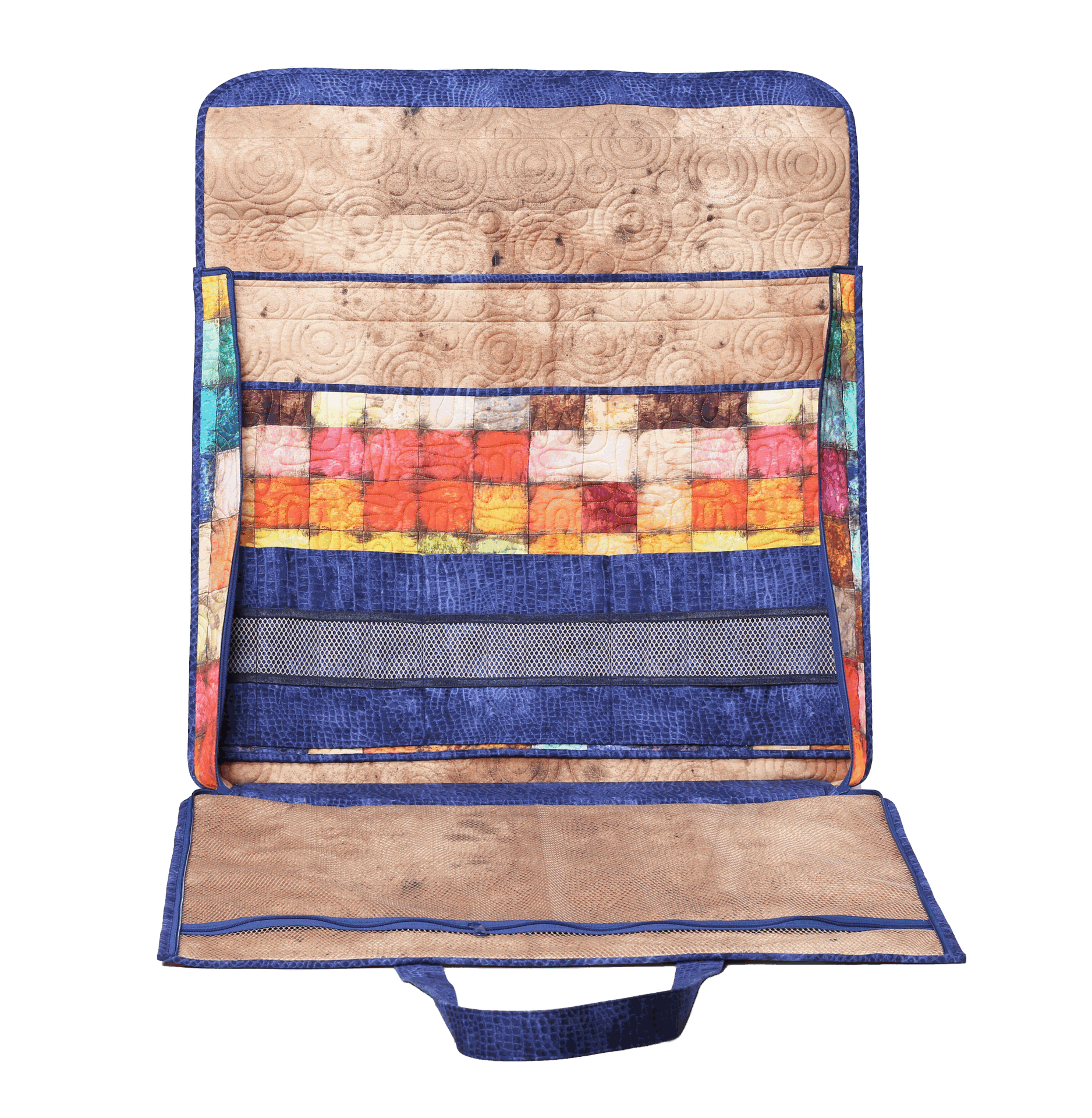 The large case measures 21"H x 26½"W x 1½" to 5½"D when closed and will hold an 18" x 24" cutting mat.