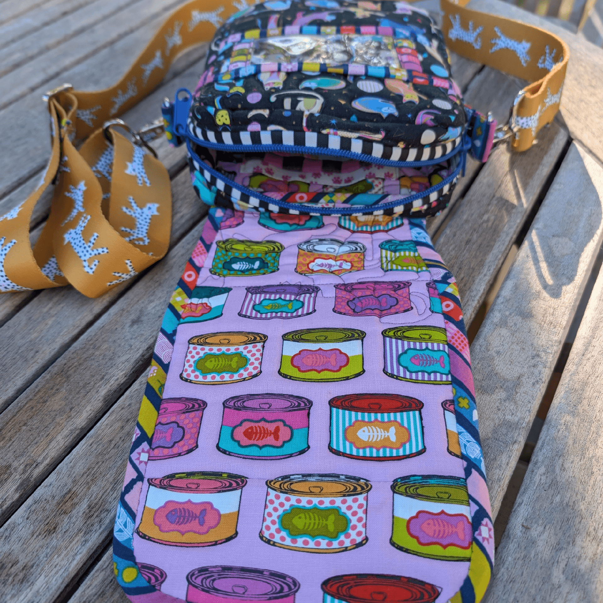 I also made a matching boxy pouch from the quilted remnants. No pattern this time, just measurements and a bit of math.