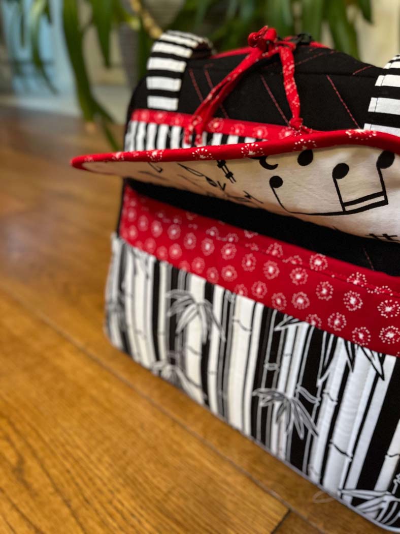 WHAT WE LOVED: Annie had this to say, "I enjoyed seeing all the different fabrics that Cindy used to make this red/white/black bag for her stepmother. She did a beautiful job of combining them and photographing the finished bag."
