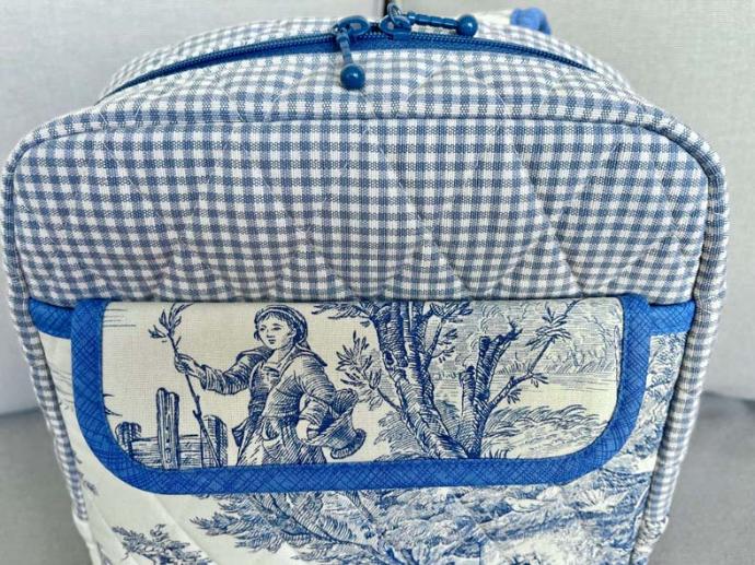 WHAT WE LOVED: Annie had this to say, "Kicki did a beautiful job on this classic blue and white Back At Ya! It is SO very lovely. I was happy to hear how well the bag suits her needs and enjoyed seeing how she customized her backpack using the straps from Out and About. Thanks, Kicki, for sharing so many photos of all parts of your fabulous backpack!"