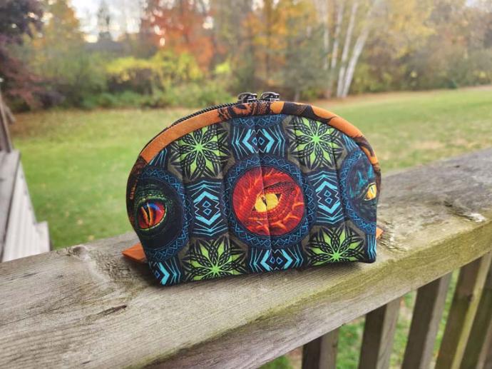 As she walks with the assistance of a cane, I put d-rings on for an adjustable strap, also one of your patterns, in case she would prefer to carry it cross body. I added a key leash inside, made from the salvage. I also put bag feet on the bottom, but did not take a photo. A few days later, I decided to make a medium clam up, just because.