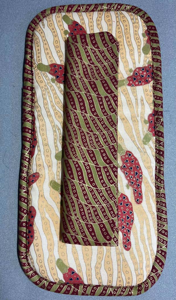 As I already had the pattern, all that was left was to buy the fabric. I took the sandwich for the body of the bag, to my longarmer and chose a Celtic knot to be quilted on it. I did some free motion quilting (not something I do) on the front and back pockets, so don't look too closely...LOL