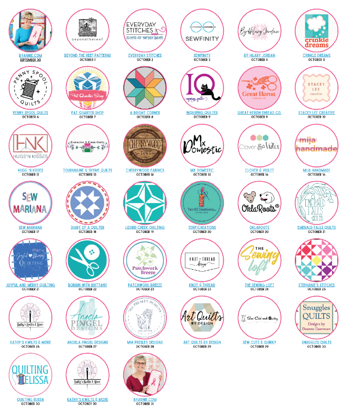 Join us each day in October for a blog hop of inspiration and education, as well as a fundraiser through the Breast Cancer Research Foundation and charity sewing opportunities. Be sure to check out each day's blog for information and giveaway opportunities.  Note: Prior blog hops from 2019 forward are also available here.